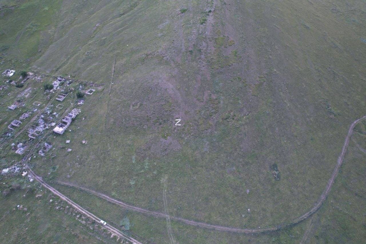 Литеру Z размером три на три метра выложили из белых больших камней весной в Краснокаменске, пятидесятитысячном городе в Забайкалье. Символ находится на сопке за 3-м микрорайоном города, в нескольких сотнях метров от жилых домов.