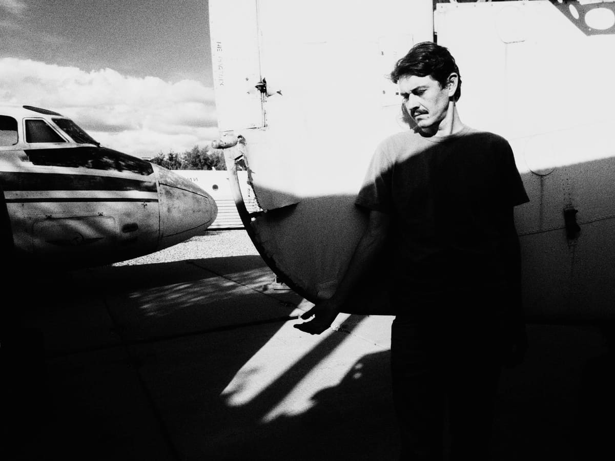 «Художник Алексей привёл меня в частный музей авиации на окраине Перми. Тут он стоит у самолёта Ан-2. На таком же кукурузнике он летал в детстве. Пока Алексей трогал самолёт, как обнимает берёзу вернувшийся на родину эмигрант, я его и сфотографировала».