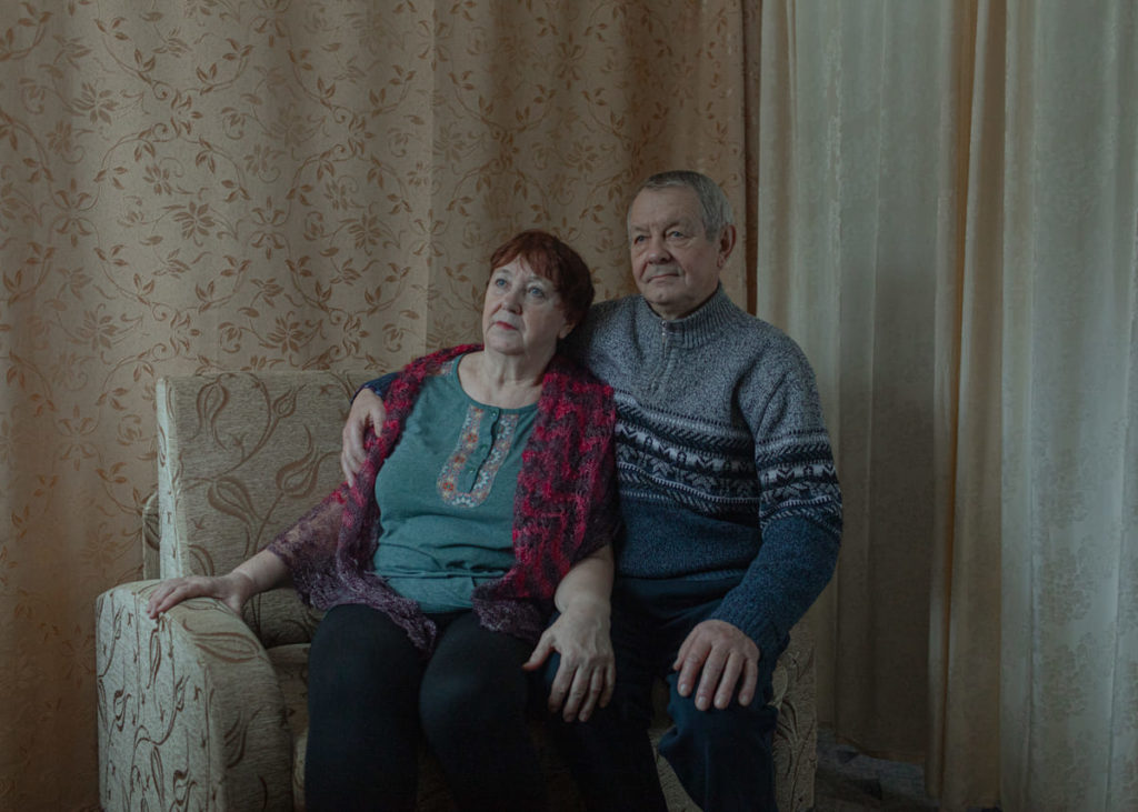 «Жительница карельского села Киндасово Валентина Аникина с мужем в своём доме. Семья Валентины Аникиной проживает в Киндасово с XVIII века. Её предком был мельник Кузьма Егорович Трифонов, легенду о котором используют местные бизнесмены для привлечения туристов в село. Они устраивают экскурсии по селу, развлекают туристов пением на карельском языке и играют на аутентичных инструментах. Валентина Аникита вместе с другими активными жителями Киндасово пытается отстоять у карельских властей право на спокойную жизнь в селе без толп туристов».