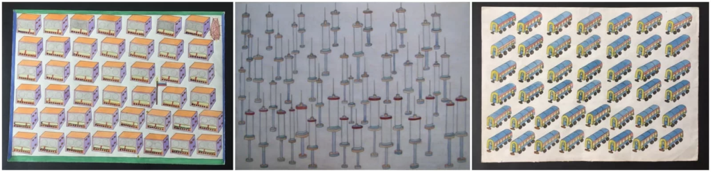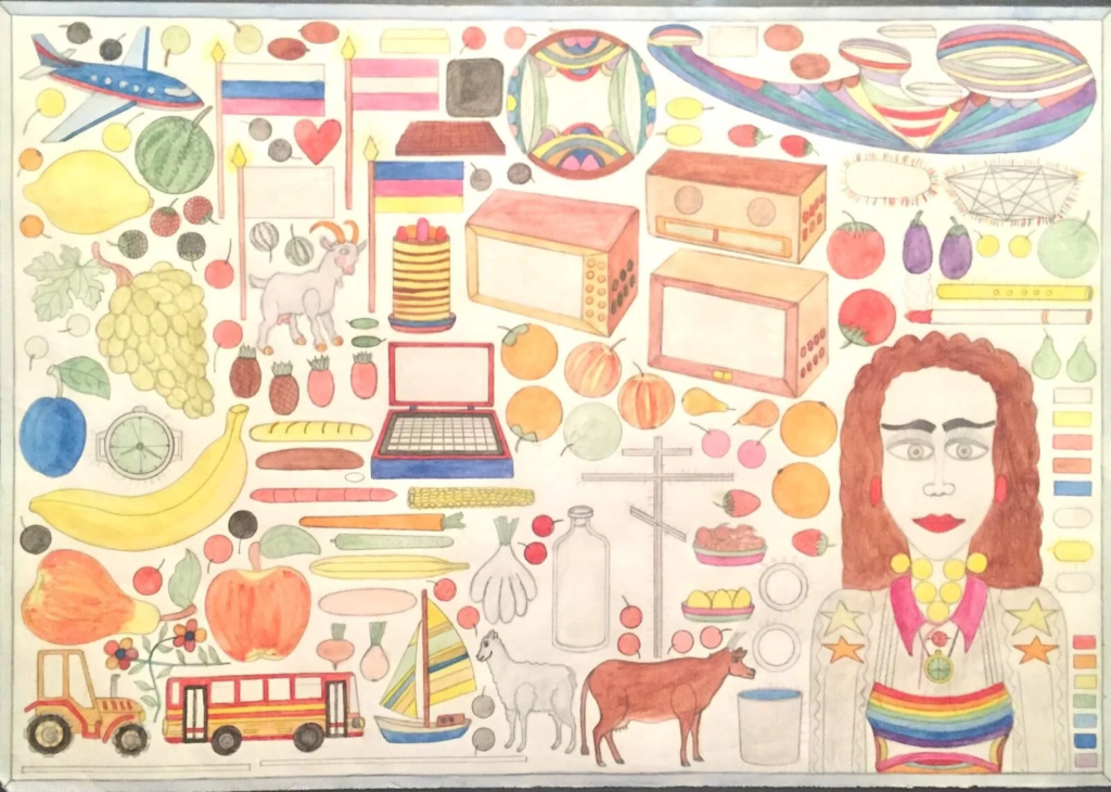 — Эти сорок четыре предмета, — рассказывает Александра, — он рисует одинаковыми, а потом перечисляет на обороте. Сорок четыре солнца или сорок четыре минерала — а рядом могут быть ещё женщины или животные.