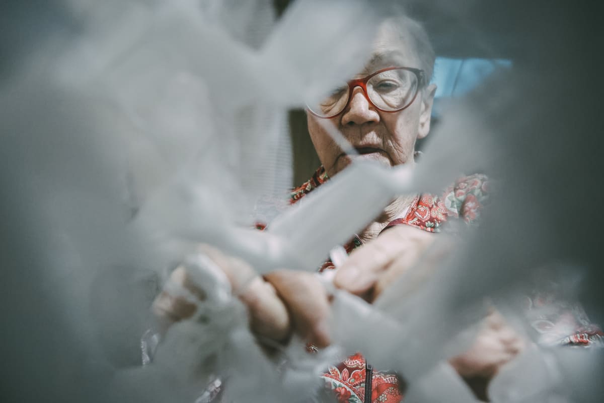 «Я давно искала, какой волонтёрской деятельностью заняться, — говорит она, подплетая один за другим белые отрезки тюля в сеть. — В этом году обстоятельства так сложились, что пришлось задержаться в Белгороде. А поскольку без дела сидеть не могу, хотела помочь фронту. Сначала я из дома вытащила все свои вещи, а потом и вещи сына — всё отвозила военным. А потом начала здесь помогать руками».