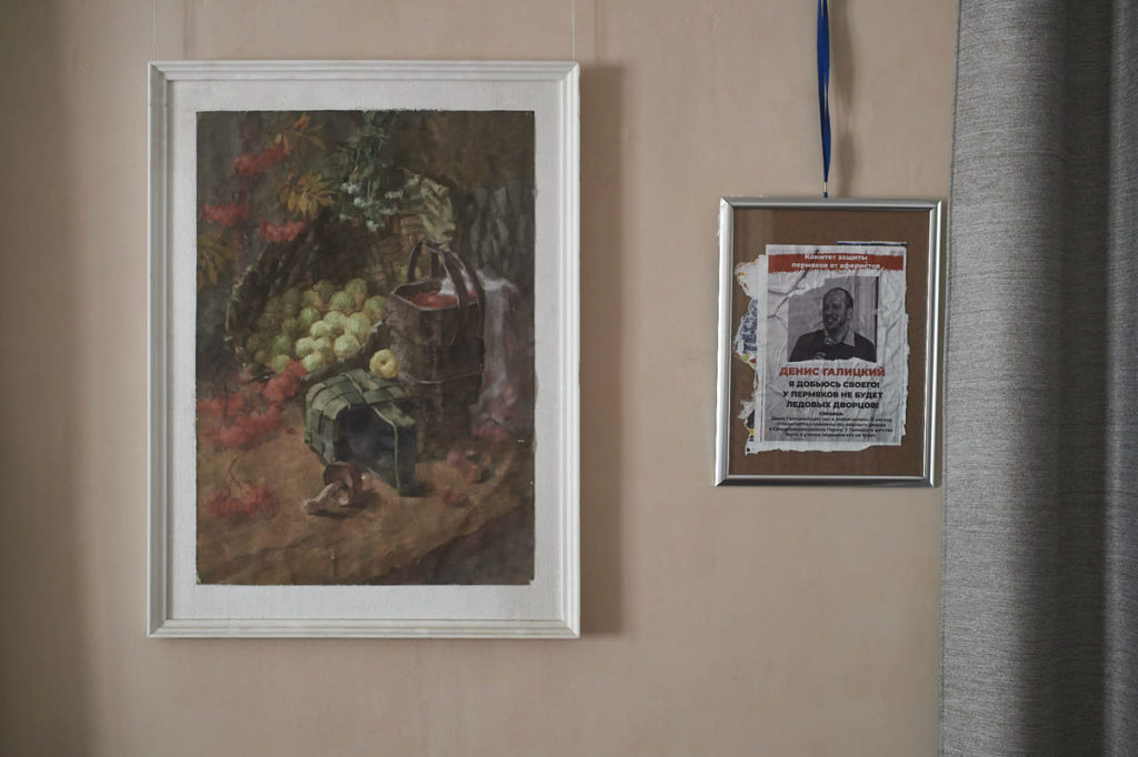 Найти квартиру пятидесятитрёхлетнего Дениса Галицкого нетрудно. И на калитке, ведущей во двор, и на подъездной двери — напротив соответствующей кнопки — заботливо прилеплена бумажка: «Квартира Галицкого». Все, кто так или иначе связан с пермским активизмом и общественной деятельностью, слышали о ней — это большое помещение в двухэтажном доме на улице Куйбышева, которое любой может зарезервировать под собственное мероприятие, собрание, съёмку (аппаратура там тоже есть) и вообще что угодно. Всё это Галицкий предоставляет совершенно бесплатно: например, в 2020 году там регулярно собирались пермские члены «Другой России имени Э.В. Лимонова», а в прошлом году проходили съёмки политического ток-шоу «На четверых», отчётливо либерального. Примеров разношёрстных персонажей, которые так или иначе пользовались квартирой Галицкого, можно было бы подобрать и больше, но в последнее время она не пользуется популярностью: туда никто не идёт, потому что количество общественных инициатив в принципе стало исчезающе малым.