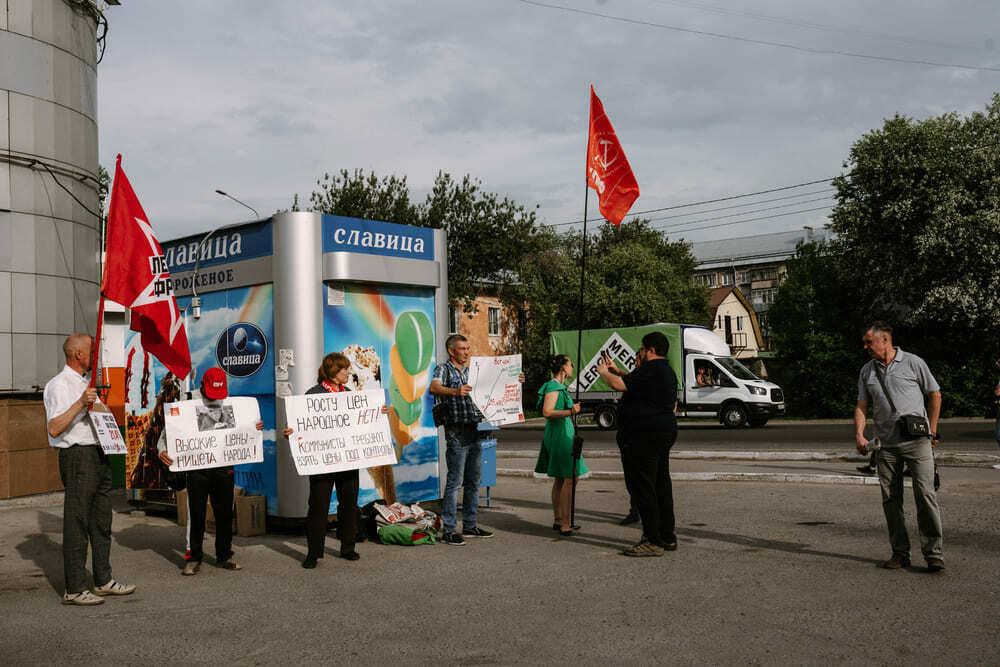 И 18 мая пикет «Против повышения цен!» состоялся. Как сообщает группа алтайского КПРФ во «ВКонтакте», на акцию пришли также активисты движений «Левый Фронт» и «За новый социализм». Но всего участников, сказал «Новой вкладке» представитель коммунистов в Барнауле Даниил Востриков, было «около 10 человек». В руках у них были плакаты: «Росту цен — народное НЕТ!», «Высокие цены — нищета народа!», «Рост цен — это просто жадность торговца!».