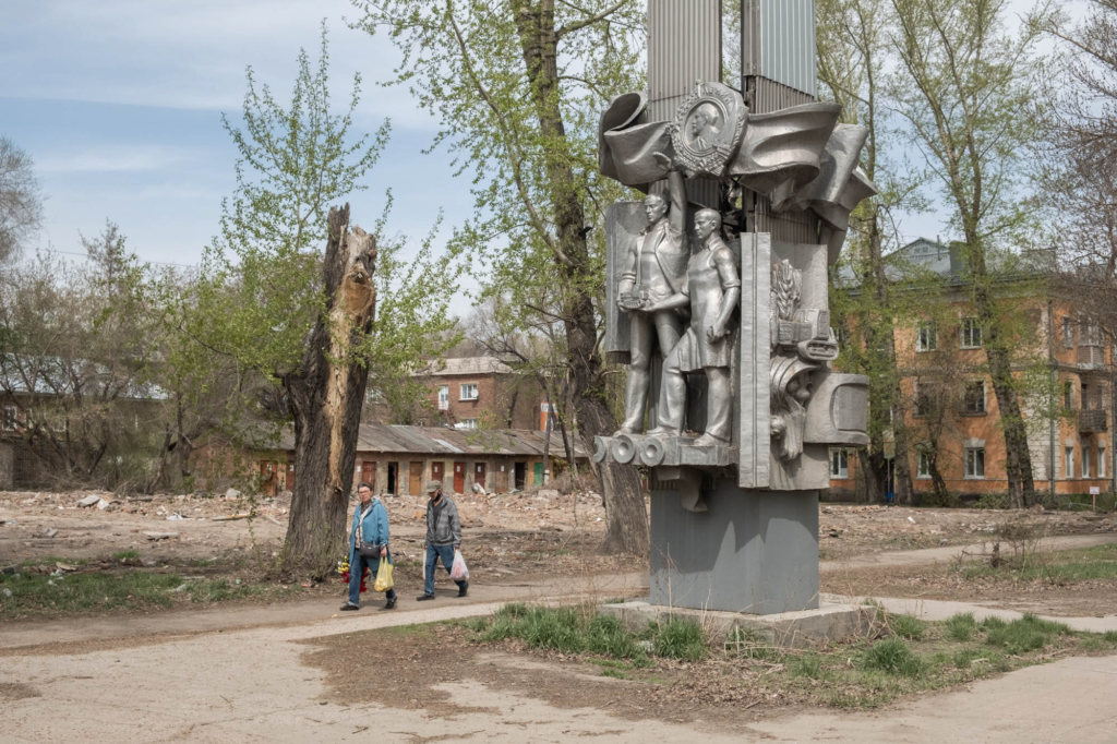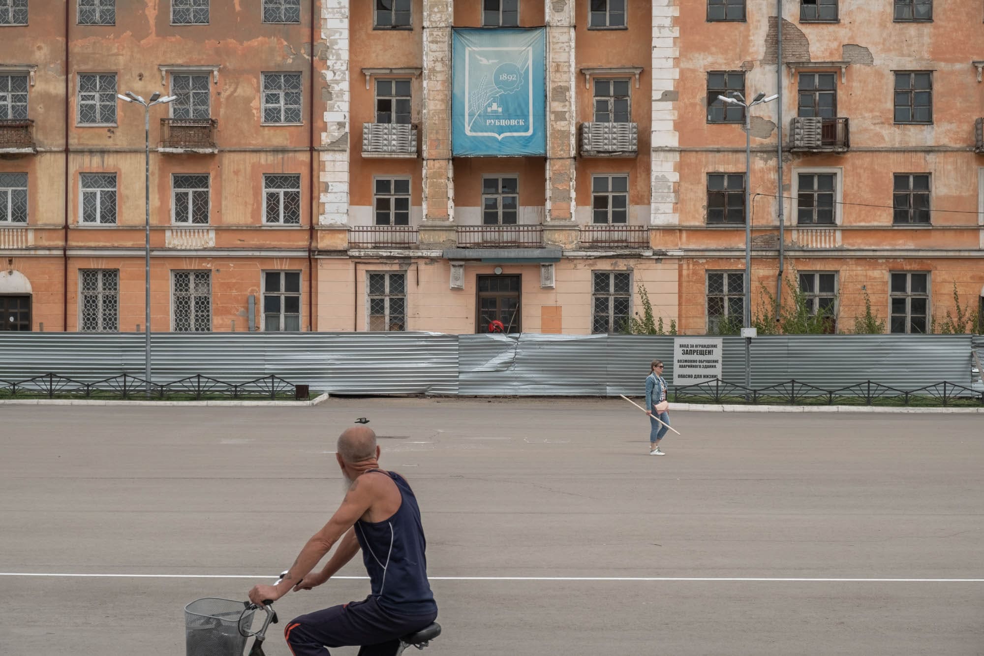 На въезде в город начинаются руины Алтайского тракторного завода: горящие покрышки, разваленные постройки, объявления о скупке чермета. АТЗ создали в 1941 году из эвакуированных подальше от линии фронта Харьковского, Одесского и Сталинградского тракторных заводов. Население Рубцовска вместе с появлением предприятия увеличилось в 2,5 раза и росло, пока завод развивался. В 2011 году АТЗ прекратил работу как банкрот и Рубцовск начал затухать.