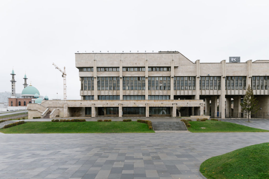 Здание мэрии и по совместительству концертный зал им. Сары Садыковой, построенное в 1988 году, покрылось плесенью и трещинами. Руководство города обещает его отремонтировать после завершения строительства соборной мечети «Джамиг» (слева на фото)