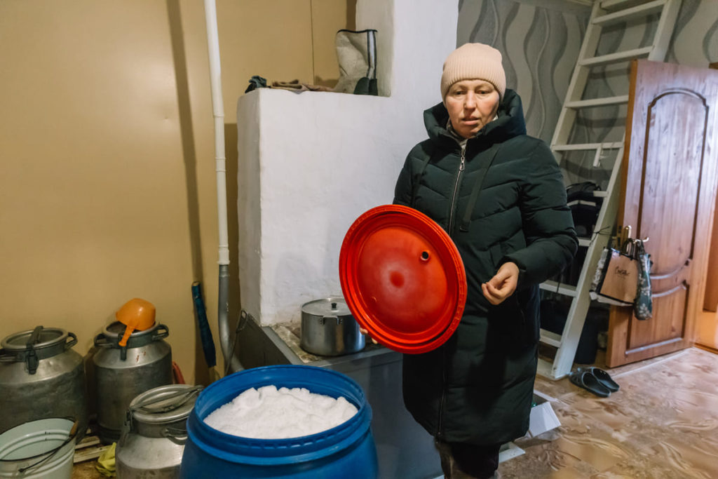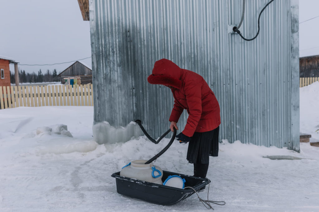 Заводим беседу с местной жительницей Верой, чей дом стоит прямо на берегу. У неё в огороде свой колодец, но таких счастливчиков мало — до аварии большинство жителей брали воду из реки. Качество воды в двух артезианских скважинах устраивает не всех, некоторые люди используют для бытовых нужд ту, что из колонки, а для питания растапливают снег или набирают воду в озёрах поблизости.