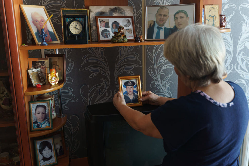 «Ошарашил меня. Ревела, выла: „Не хочу, чтоб ты шёл туда“. А он: „Мам, а кто, если не я?“ Отец, сержант запаса, не то что бы радовался, но сыном гордился, мол, это его долг. А мне этот долг не нужен. У меня двоюродные сёстры под Киевом и в Одессе. Столько пацанов полегло! Не хочу, чтобы мои и другие дети на ней погибали. У нас в посёлке человек двадцать сразу забрали. И семейные, и закредитованные, всякие. А наш — сам, добровольно пошёл».