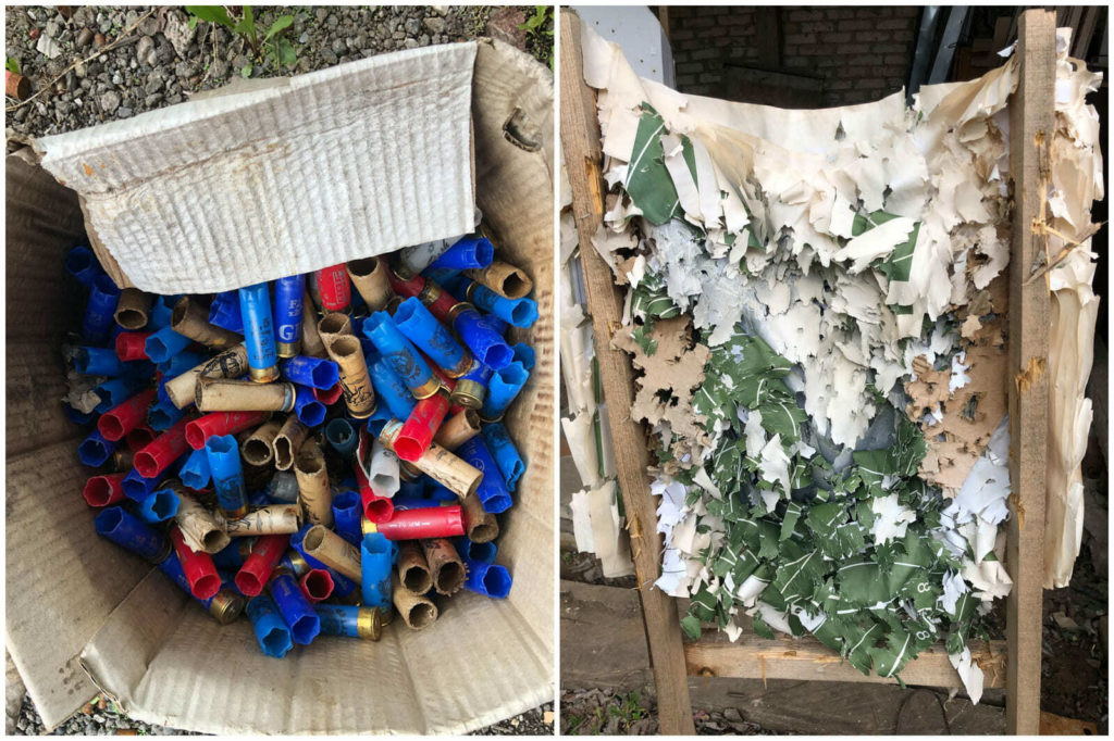 Инструктор тренирует стрелков с карабином «Сайга-9»: алгоритм работы, как у автомата Калашникова, а отдача небольшая. «Хорошая машинка для обучения». Дмитрий расчехлил личное оружие — помповое ружье.